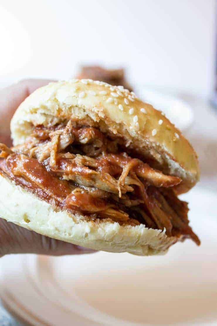 This pork roast is pull-apart tender after 6-8 hours of cooking. Just plop it in on the way out the door and add your favorite BBQ sauce for a delicious pulled pork sandwich in the evening.