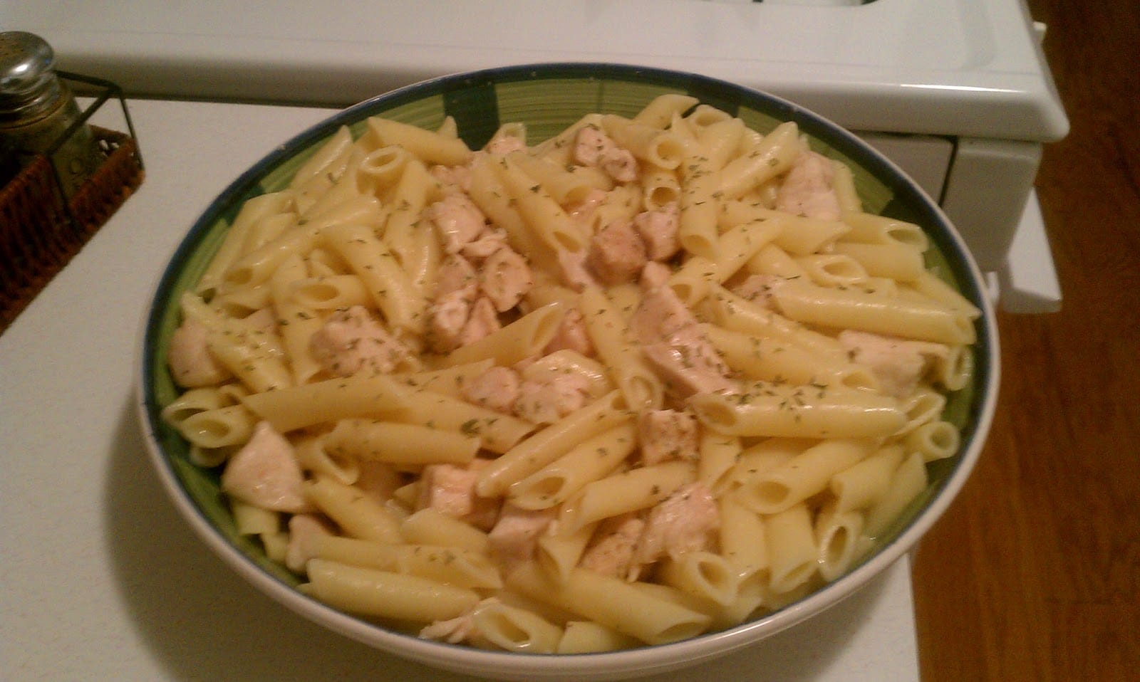 Store the chicken and pasta in separate airtight containers in the refrigerator. The chicken will last longer in the refrigerator than the pasta.
