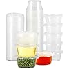 200 Sets - 2 oz Jello Shot Cups,Condiment Containers with Leak-Proof Lids, Disposable Plastic Cups with Lids for Sauces, Souffle, Food Samples, Pills and More